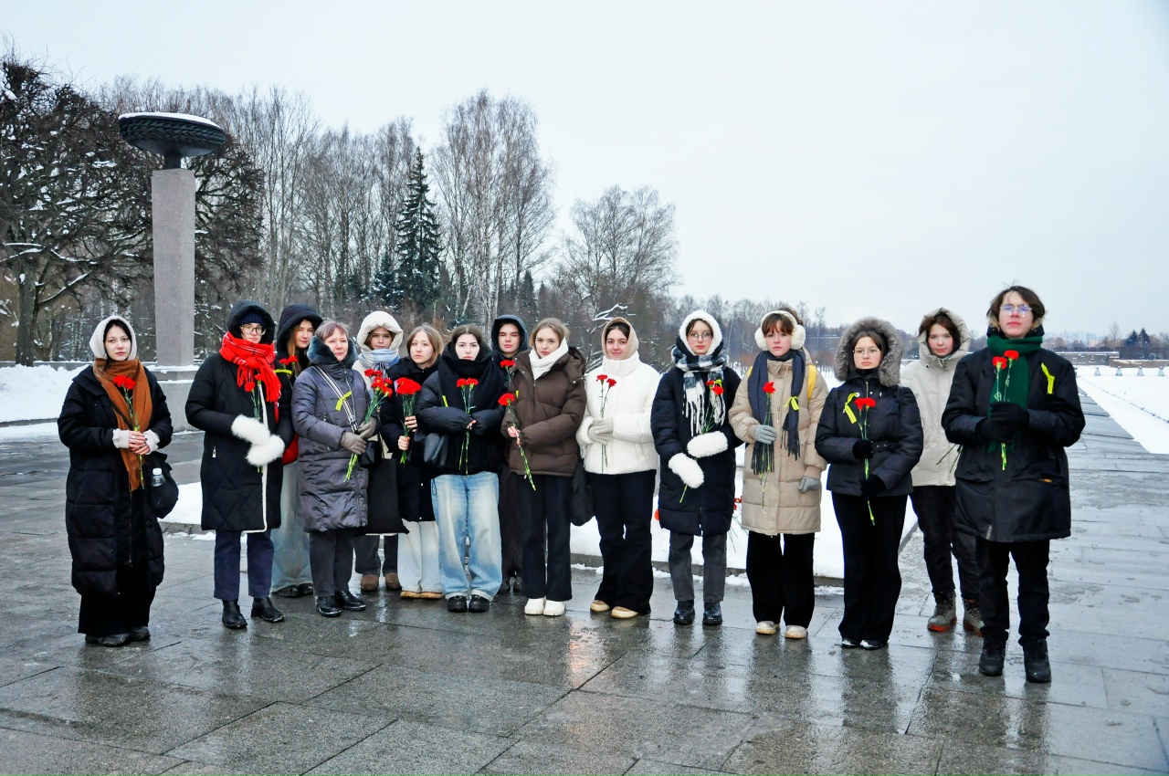Обучающиеся группы 9А-251 во главе с классным руководителем Еленой Викторовной Медведковой пришли на Пискарёвское кладбище, где прошла традиционная акция «Мы помним». Ребята вспомнили подвиг жителей и защитников Ленинграда у Вечного огня, почтили минутой молчания павших в дни блокады, возложили цветы к монументу «Мать-Родина». Затем зажгли свечи памяти и выложили надпись «Мы помним».